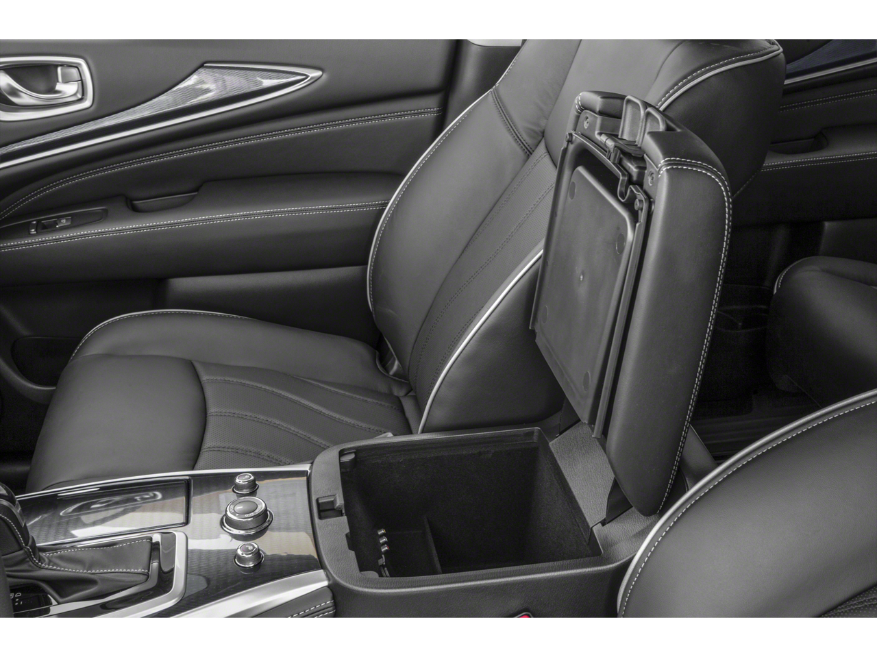 - Radio: AM/FM/CD Audio System -inc: 6 speakers, MP3 playback capability, Radio Data System (RDS), speed-sensitive volume control, INFINITI controller, auxiliary audio/video input jacks in front center console, 6 USB charging ports (charge only): front center console, illuminated (2X - 1 type A and 1 type C), rear center console-mounted, illuminated (2X - 1 type A and type C) non theater only and 3rd row (2X - type A), INFINITI InTouch w/8" WVGA color touch-screen vehicle information display, Bluetooth® hands-free phone system, hands-free text messaging assistant, streaming audio via Bluetooth® wireless technology, INFINITI voice recognition for audio, Bluetooth® and vehicle information including music search by voice, 2 USB ports for iPod and compatible devices, HD Radio, SiriusXM satellite radio w/3-month complimentary trial and SiriusXM Travel Link w/4 year complimentary trial access to weather, fuel prices, stock prices, sports scores and movie times