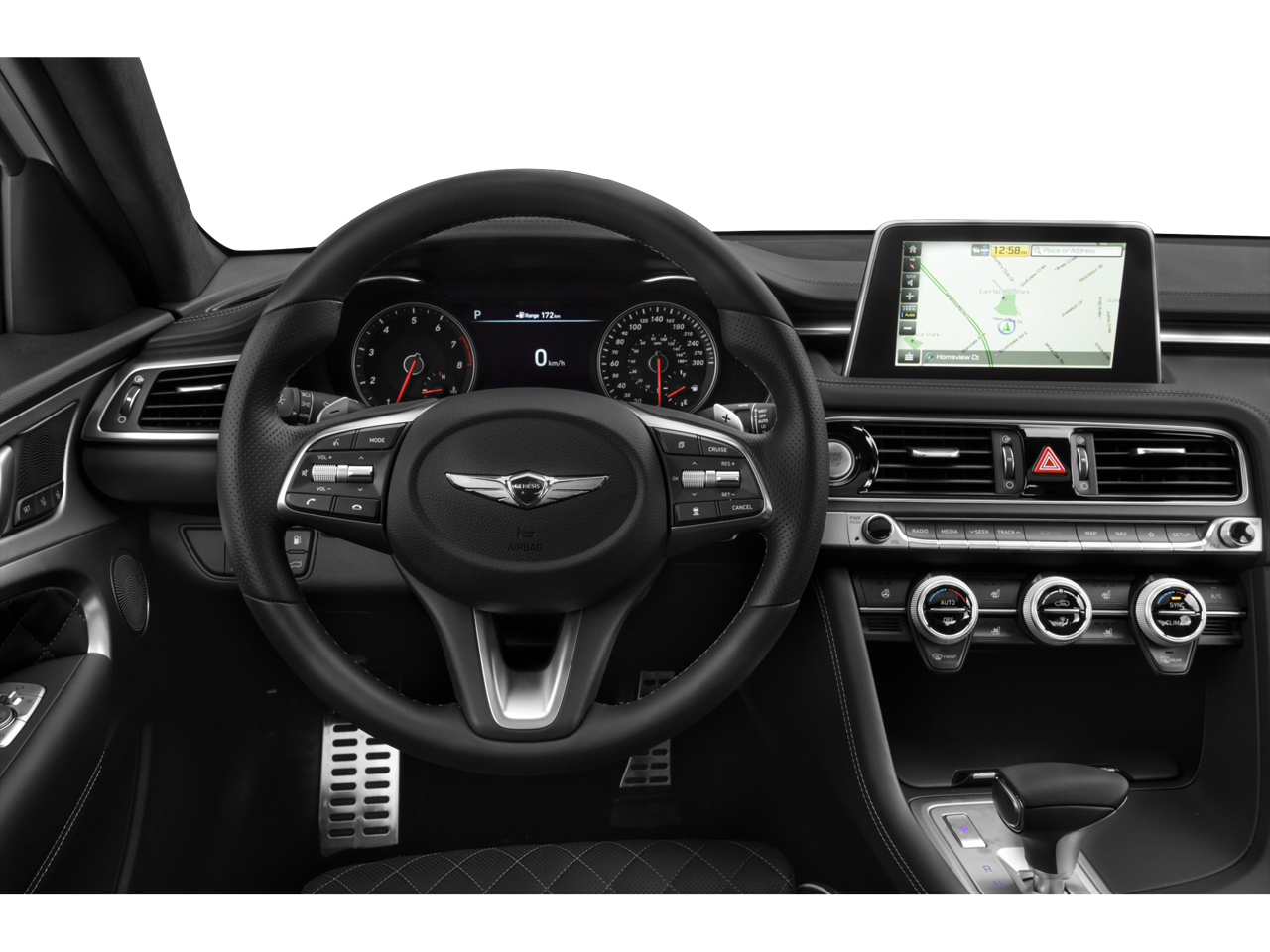 - Radio: AM/FM/SiriusXM/HD Lexicon Audio System -inc: 600 watts, 11 channel digital external amplifier, 15 high efficiency speakers including 2 subwoofers, Quantum Logic surround sound, Clari-Fi music restoration, 8" 720p HD touchscreen display, 12v power outlet, wireless charging pad, speed-sensing auto volume control, HD Traffic, AVN 5.0 integrated navigation system, Android Auto, Apple CarPlay, 2 front USB ports, auxiliary input jack, Bluetooth hands-free phone system and Genesis Connected Services