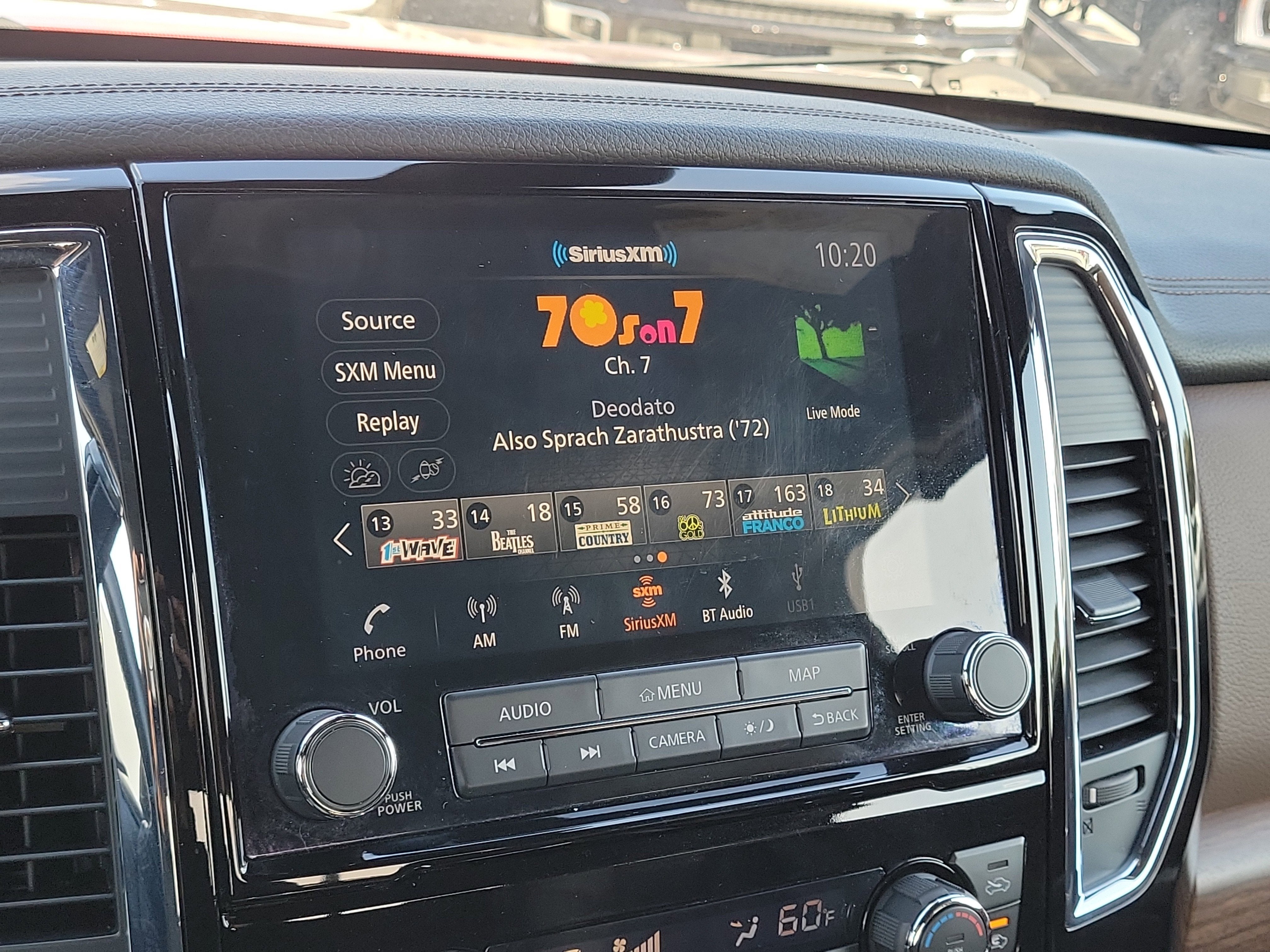 - Radio: NissanConnect w/Navigation -inc: 9" touchscreen display, 12 speaker Fender premium audio system, Apple CarPlay, Android Auto, HD Radio, SiriusXM satellite radio, SiriusXM Traffic, SiriusXM Travel Link w/weather, fuel prices, movie listings, stock info, sports and parking, TomTom weather, Nissan door to door navigation w/3D building graphics and satellite imagery, online POI search, over-the-air map updates and online premium traffic information, 2-USB (1 type A, 1 type C) connection ports for iPod interface and other compatible devices, 2 USB A ports (charge only), Bluetooth® hands-free phone system, streaming audio via Bluetooth®, hands-free text messaging assistant, Nissan Connect services, WiFi hotspot, Nissan voice recognition for navigation and audio, Siri Eyes Free and follow me home function