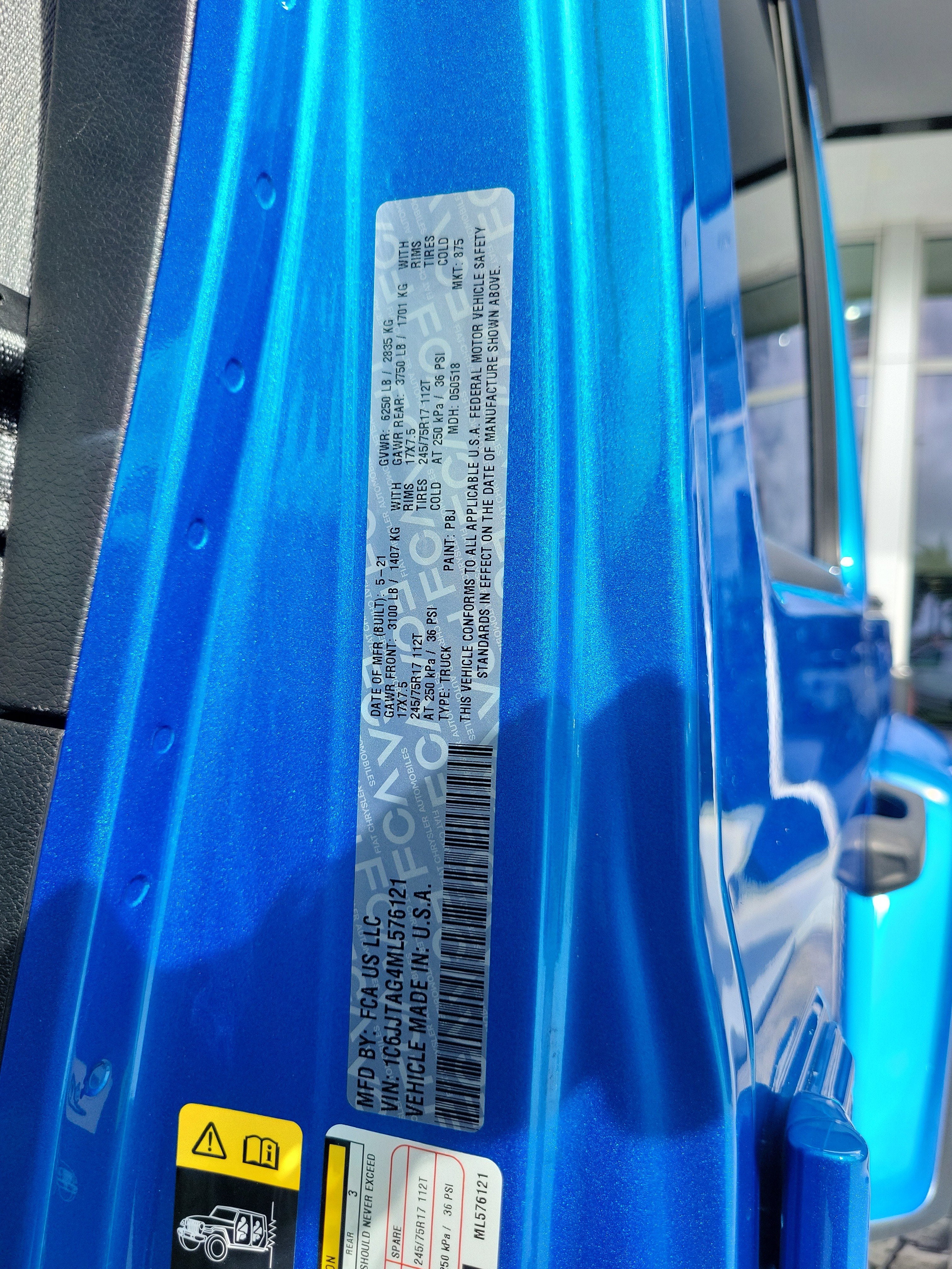 Auxiliary Switch Group (240 Amp Alternator, 700 Amp Maintenance Free Battery, and Auxiliary Switches), Convenience Group, GVWR: 6,250 lbs w/Max Tow Package, Max Tow Package w/4.10 Axle Ratio (Anti-Lock 4-Wheel Disc Heavy Duty Brakes, Anti-Spin Differential Rear Axle, Black Molded-In-Color Fender Flares (2-Piece), Class IV Hitch Receiver, Dana M210 Wide Front Axle, Dana M220 Wide Rear Axle, Daytime Running Lamp System, Heavy-Duty Engine Cooling, and Trailer Hitch Zoom), Popular Equipment Package (Black 3-Piece Hard Top), Quick Order Package 24S Sport S (Automatic Headlamps, Body Color Fender Flares (2-Piece), Deep Tint Sunscreen Windows, Front 1-Touch Down Power Windows, Leather Wrapped Steering Wheel, Molded in Color Bumper w/Accent Color, Normal Duty Plus Suspension, Power Heated Mirrors, Power Tailgate Lock, Remote Keyless Entry, Security Alarm, Speed Sensitive Power Locks, Sport S, and Sun Visors w/Illuminated Vanity Mirrors), Technology Group (7.0" Touch Screen Display, Air Conditioning w/Auto Temperature Control, Apple CarPlay, Cluster 7.0" TFT Color Display, For More Info, Call 800-643-2112, Google Android Auto, GPS Antenna Input, Integrated Center Stack Radio, Integrated Voice Command w/Bluetooth®, Radio: Uconnect 4 w/7" Display, SiriusXM Radio Service, SiriusXM Satellite Radio, and USB Host Flip), Gladiator Sport, 4D Crew Cab, 3.6L V6 24V VVT, 8-Speed Automatic, 4WD, Hydro Blue Pearlcoat, Black Cloth, 110 mph Vehicle Max Speed Calibration, 4-Wheel Disc Brakes, 8 Speakers, ABS brakes, Air Conditioning, AM/FM radio, Brake assist, Cloth Low-Back Bucket Seats, Compass, Delay-off headlights, Driver door bin, Driver vanity mirror, Dual front impact airbags, Dual front side impact airbags, Electronic Stability Control, Front anti-roll bar, Front Bucket Seats, Front Center Armrest w/Storage, Front fog lights, Front reading lights, Integrated roll-over protection, Low tire pressure warning, Manufacturer's Statement of Origin, MOPAR All-Weather Floor Mats (DISC), MOPAR Grab Handle Kit, Normal Duty Suspension, Occupant sensing airbag, Outside temperature display, ParkView Rear Back-Up Camera, Passenger door bin, Passenger vanity mirror, Power steering, Radio data system, Radio: Uconnect 3 w/5" Display, Rear anti-roll bar, Rear reading lights, Speed control, Split folding rear seat, Steering wheel mounted audio controls, Tachometer, Telescoping steering wheel, Tilt steering wheel, Traction control, Trip computer, Variably intermittent wipers, Wheels: 17" x 7.5" Black Aluminum (DISC), and Wheels: 17" x 7.5" Black Steel Styled. Recent Arrival! Odometer is 10754 miles below market average!