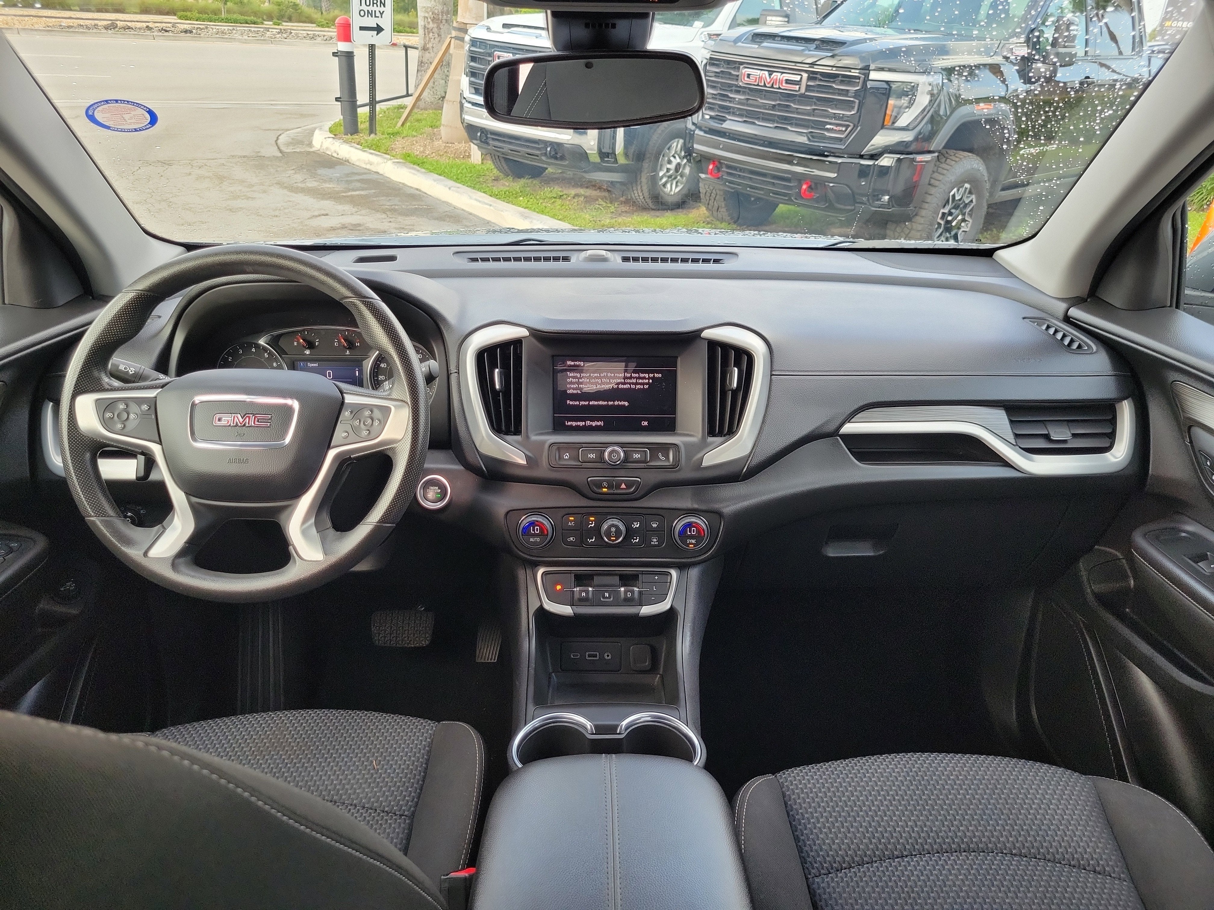 Driver Convenience Package (8-Way Power Driver Seat Adjuster, Driver & Front Passenger Heated Seats, Dual-Zone Automatic Climate Control, Power Driver Lumbar Control, Remote Start, and Roof-Mounted Luggage Rack Side Rails), Preferred Equipment Group 3SA, Terrain Pro Safety Plus (Adaptive Cruise Control, Outside Heated Power-Adjustable Mirrors, Rear Park Assist, and Safety Alert Seat), Terrain SLE, 4D Sport Utility, 1.5L DOHC, 9-Speed Automatic, FWD, Sterling Metallic, Jet Black Cloth, 2 USB Data Ports w/Auxiliary Input Jack, 3.47 Axle Ratio, 4-Way Manual Driver's Seat, 4-Way Manual Front Passenger Seat, 4-Wheel Disc Brakes, 4.2" Multi-Color Driver Information Screen, 6 Speakers, 6-Speaker Audio System Feature, ABS brakes, Air Conditioning, Alloy wheels, AM/FM radio: SiriusXM, Auto High-beam Headlights, Auto-dimming Rear-View mirror, Automatic temperature control, Bluetooth娨 For Phone, Brake assist, Bumpers: body-color, Compass, Delay-off headlights, Driver door bin, Driver vanity mirror, Dual front impact airbags, Dual front side impact airbags, Electronic Stability Control, Emergency communication system: OnStar and GMC connected services capable, Four wheel independent suspension, Front anti-roll bar, Front Bucket Seats, Front Center Armrest, Front reading lights, Fully automatic headlights, Heated door mirrors, Illuminated entry, Lane Change Alert w/Side Blind Zone Alert, Low tire pressure warning, Occupant sensing airbag, Outside temperature display, Overhead airbag, Overhead console, Panic alarm, Passenger door bin, Passenger vanity mirror, Power door mirrors, Power Programmable Rear Liftgate, Power steering, Power windows, Premium Cloth Seat Trim, Radio data system, Radio: GMC Infotainment Audio System w/7" Display, Rear anti-roll bar, Rear Cross-Traffic Alert, Rear seat center armrest, Rear window defroster, Rear window wiper, Remote keyless entry, Security system, SiriusXM Radio, Speed control, Speed-sensing steering, Split folding rear seat, Spoiler, Steering wheel mounted audio controls, Tachometer, Telescoping steering wheel, Tilt steering wheel, Traction control, Trip computer, Variably intermittent wipers, Wheels: 17" x 7" Silver Painted Aluminum, and Wireless Apple CarPlay/Wireless Android Auto. 24/29 City/Highway MPG