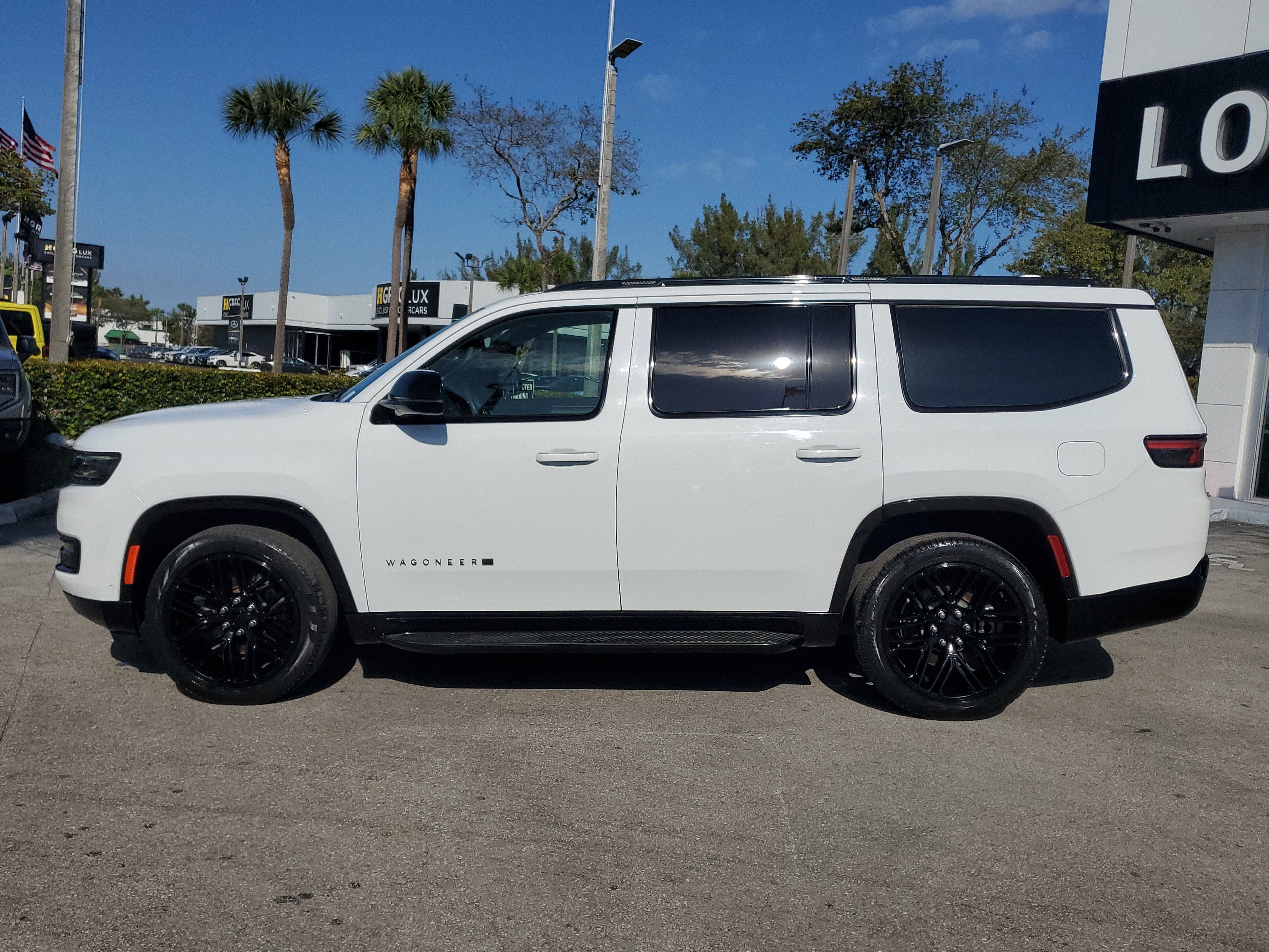 Carbide Appearance Package, Flexible Seating Group (60/40 Power Recline 3rd Row Seat, 7-Passenger Seating, Floor Console w/Cupholder, and Power Tip/Slide Recline 2nd Row Buckets), Quick Order Package 25F Carbide (3 Panel Sunroof, Adjustable Roof Rail Crossbars, Black Interior Accents, Cargo Cover, Piano Black Exterior Accents, Reversible Carpet/Vinyl Cargo Mat, and Wheels: 20" x 9" Gloss Black Painted Aluminum), Rear Seat Video Group 1 (Amazon Fire TV Built-In, Seatback Video Screens, and Video USB Port), Wagoneer Series II, 4D Sport Utility, 3.0L I6, 8-Speed Automatic, 4WD, Bright White Clearcoat, Global Black w/Leather Trimmed Bucket Seats, 10 Speakers, 3.55 Rear Axle Ratio, 3rd row seats: bench, 4-Wheel Disc Brakes, ABS brakes, Adjustable pedals, Air Conditioning, Alloy wheels, AM/FM radio: SiriusXM with 360L, Anti-whiplash front head restraints, Audio memory, Auto-dimming door mirrors, Auto-dimming Rear-View mirror, Auto-leveling suspension, Automatic temperature control, Brake assist, Bumpers: body-color, Compass, Delay-off headlights, Driver door bin, Driver vanity mirror, Driver's Seat Mounted Armrest, Dual front impact airbags, Dual front side impact airbags, Electronic Stability Control, Emergency communication system: Automatic SOS Call, Exterior Parking Camera Rear, Four wheel independent suspension, Front anti-roll bar, Front Bucket Seats, Front Center Armrest w/Storage, Front dual zone A/C, Front fog lights, Front Passenger Interactive Display, Front reading lights, Fully automatic headlights, Garage door transmitter, Genuine wood console insert, Genuine wood dashboard insert, Genuine wood door panel insert, Heated door mirrors, Heated front seats, Heated steering wheel, Illuminated entry, Knee airbag, Leather Trimmed Bucket Seats, Low tire pressure warning, Memory seat, Navigation System, Normal Duty Suspension, Occupant sensing airbag, Outside temperature display, Overhead airbag, Overhead console, Panic alarm, Passenger door bin, Passenger seat mounted armrest, Passenger vanity mirror, Pedal memory, Power adjustable front head restraints, Power door mirrors, Power driver seat, Power Liftgate, Power passenger seat, Power steering, Power windows, Radio data system, Radio: Uconnect 5 Nav w/10.1" Display, Rain sensing wipers, Rear air conditioning, Rear anti-roll bar, Rear dual zone A/C, Rear reading lights, Rear seat center armrest, Rear window defroster, Rear window wiper, Reclining 3rd row seat, Remote keyless entry, Security system, Speed control, Speed-sensing steering, Speed-Sensitive Wipers, Split folding rear seat, Steering wheel memory, Steering wheel mounted audio controls, Tachometer, Telescoping steering wheel, Tilt steering wheel, Traction control, Trip computer, Turn signal indicator mirrors, Variably intermittent wipers, Ventilated front seats, Voltmeter, Wheels: 20" x 9.0" Premium 2 Aluminum, and Wheels: 22" x 9.0" Painted Gloss Black. Recent Arrival!