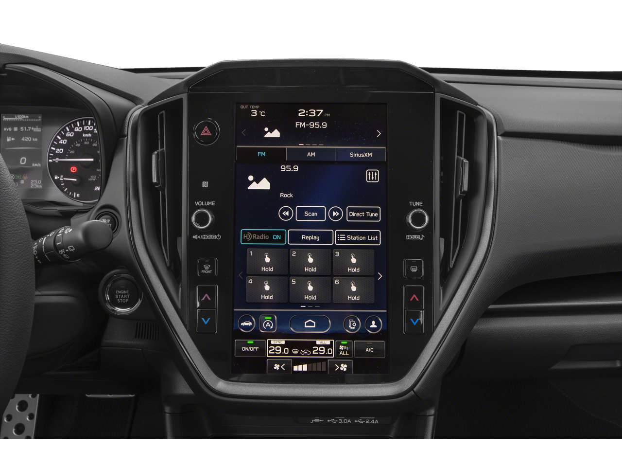 - Radio: Subaru STARLINK 11.6" Multimedia Plus Sys -inc: valet mode, AM/FM stereo, HD Radio, multi-touch gesture high resolution display screen, voice activated controls, Bluetooth audio streaming and hands-free phone connectivity, Bluetooth hands-free SMS text messaging connectivity, iPod control capability, rear-vision camera display, SiriusXM All Access radio (4 months free trial/subscription required after), SiriusXM Travel Link (4 months free trial/subscription required after), smartphone integration: Android Auto, Apple CarPlay, STARLINK cloud applications, 6 speakers, 3.5mm auxiliary input jack, illuminated/dual USB A and C input charge ports, roof mounted antenna and audio/satellite connected services